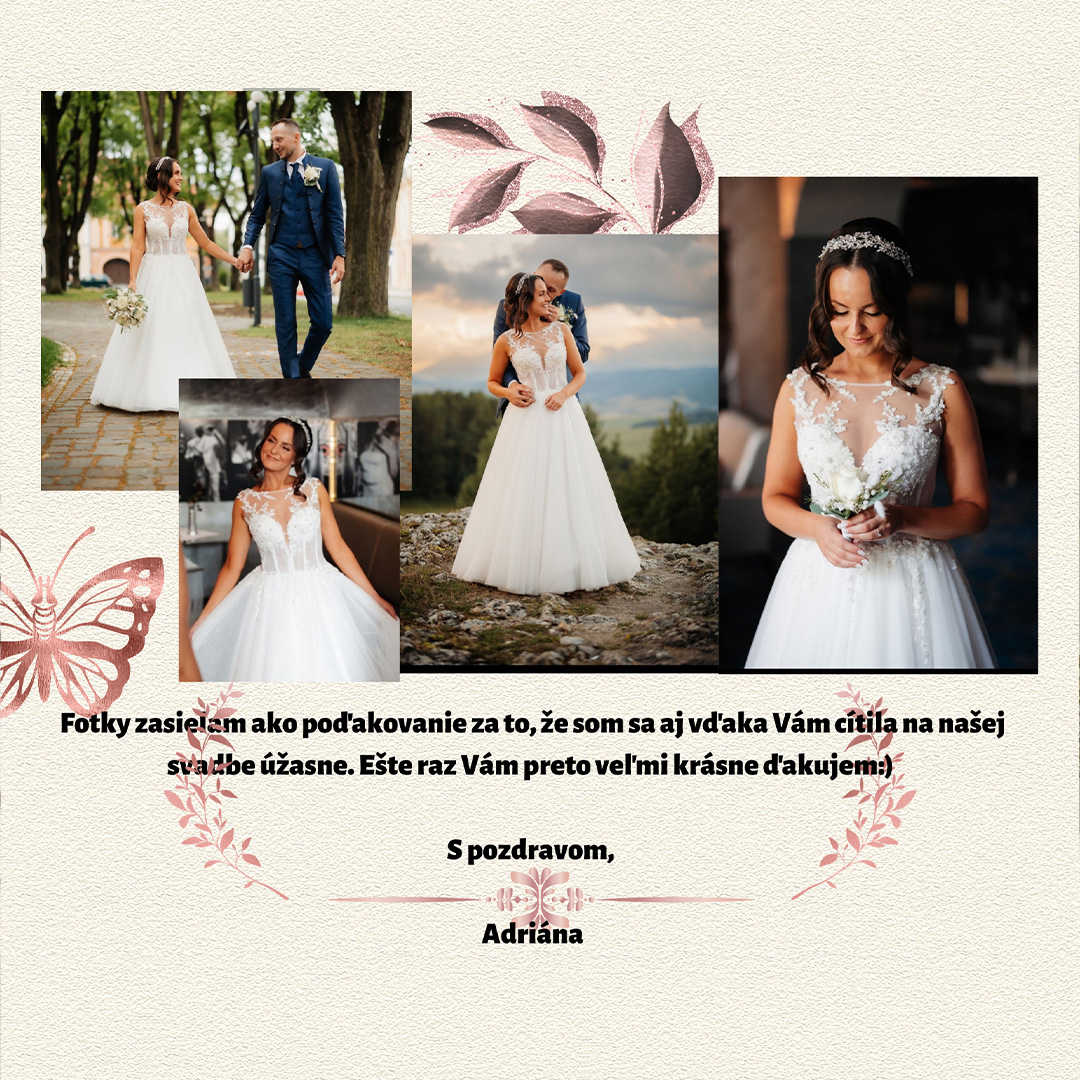 Neváhajte a zverte sa do našich rúk, sme pripravení urobiť všetko preto, aby ste sa u nás cítili príjemne a našli vaše dokonalé, vysnívané svadobné šaty, tak ako všetky naše doterajšie nevesty.